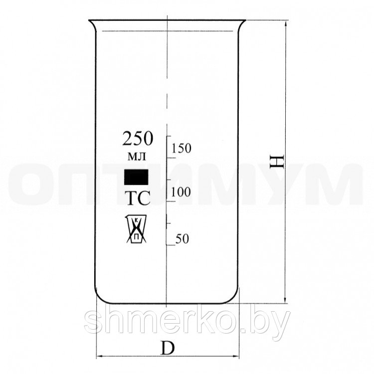 | Шифр | Номинальная вместимость, мл | D, мм | Н, мм | Примечание |